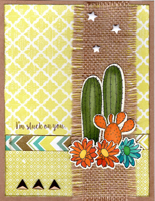 Welcome to my project for the Atlantic Hearts Sketch Challenge #141! I mixed the old with the new on this challenge. I used Close to My Heart "Skylark" paper, bullap, durables studs, enamel stars and C1643 stamp set "Stuck on You". I also used my ShinHan Markers to color in the stamps.